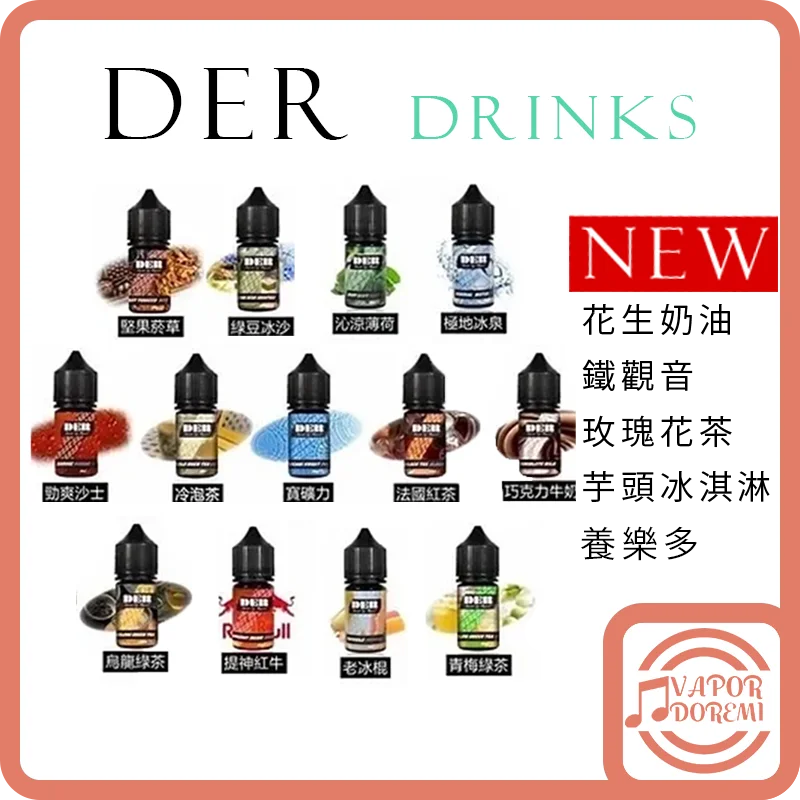 ![[新口味來囉!][美國品牌] [3-4分涼] DER 飲品&菸草系列 (新口味)拿鐵|(新口味)蘋果蘇打|(新口味)爆米花|(新口味)奶茶|養樂多|花生奶油|鐵觀音|芋頭冰淇淋|玫瑰花茶|濃情肉桂(不涼)|奶油菸草(不涼)|綠豆冰沙|薄荷|冰泉|沙士|冷泡茶|寶礦力|紅茶|巧克力牛奶|紅牛|梅子綠|老冰棍|堅果菸草(不涼)|蜜桃冰茶 小煙油30ML 35MG:圖片 2](https://doremiair.com/wp-content/uploads/2025/06/LINE_NOTE_250630_1.jpg)