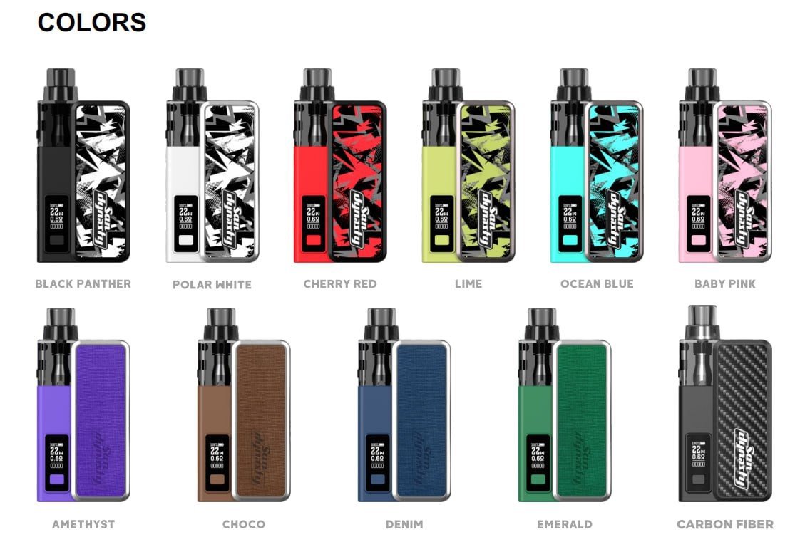 | 顏色 | 黑豹套組(內附0.6/0.8各一空倉), 白珍珠套組(內附0.6/0.8各一空倉), 櫻桃紅套組(內附0.6/0.8各一空倉), 海洋藍套組(內附0.6/0.8各一空倉), 紫水晶套組(內附0.6/0.8各一空倉), 巧克力套組(內附0.6/0.8各一空倉), 丹寧藍套組(內附0.6/0.8各一空倉), 翡翠綠套組(內附0.6/0.8各一空倉), 0.4歐姆空倉(一盒3入), 0.6歐姆空倉(一盒3入), 0.8歐姆空倉(一盒3入) |